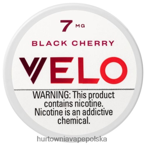 velo black cherry 7mg (wcześniej znane jako velo max black cherry) – w każdej puszce znajduje się 20 torebek nikotynowych pozbawionych liści tytoniu o smaku słodko-cierpkiej czarnej wiśni. te torebki firmy velo stanowią alternatywę dla tradycyjnych doustnych wyrobów tytoniowych.